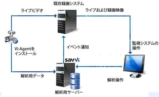 1.既存の監視システム(Agent Viに対応)と接続されているカメラをそのまま活用。
